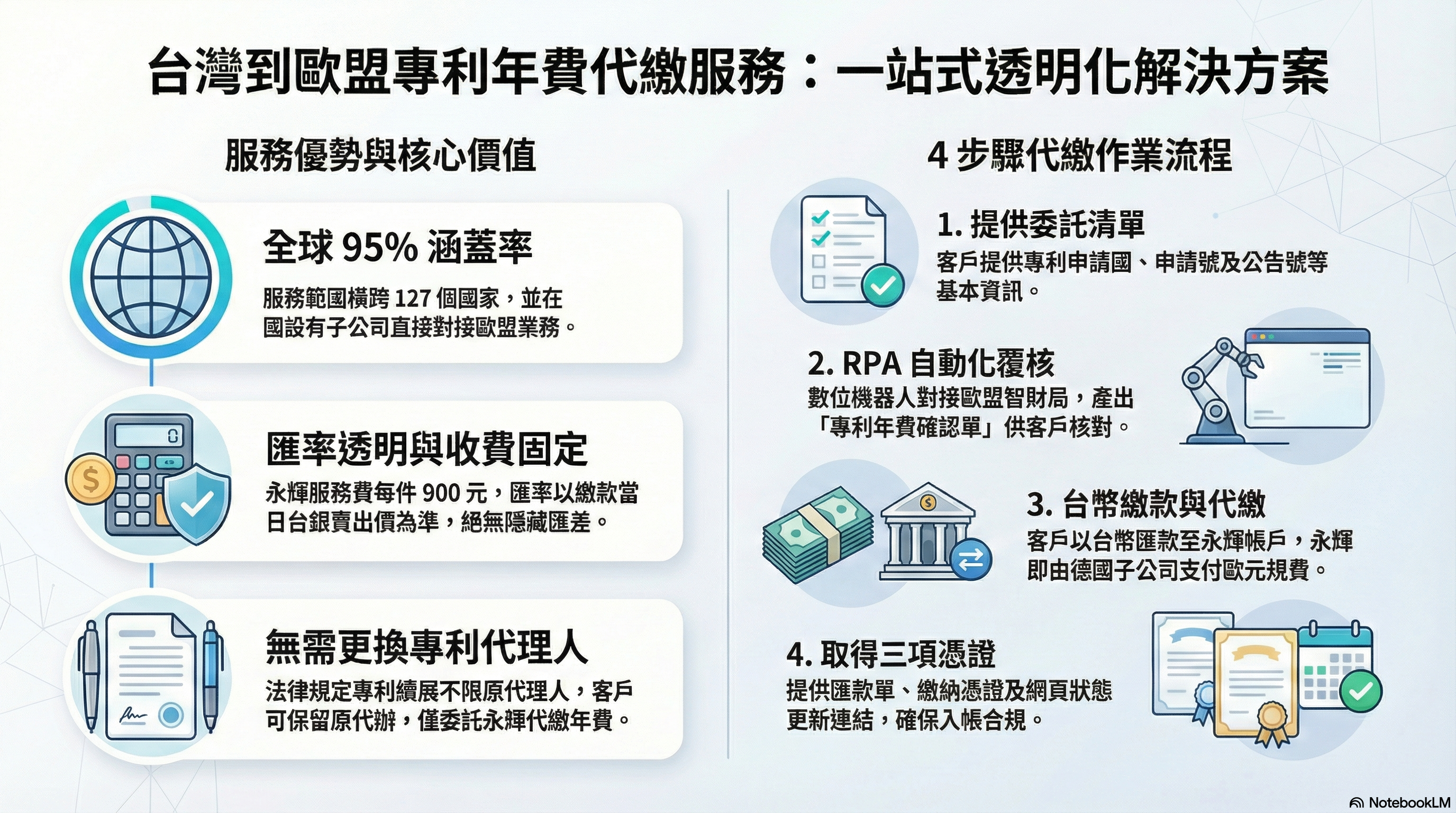永輝結合專利、資訊及財務三項專長,對於專利年費繳交相當具有競爭力。